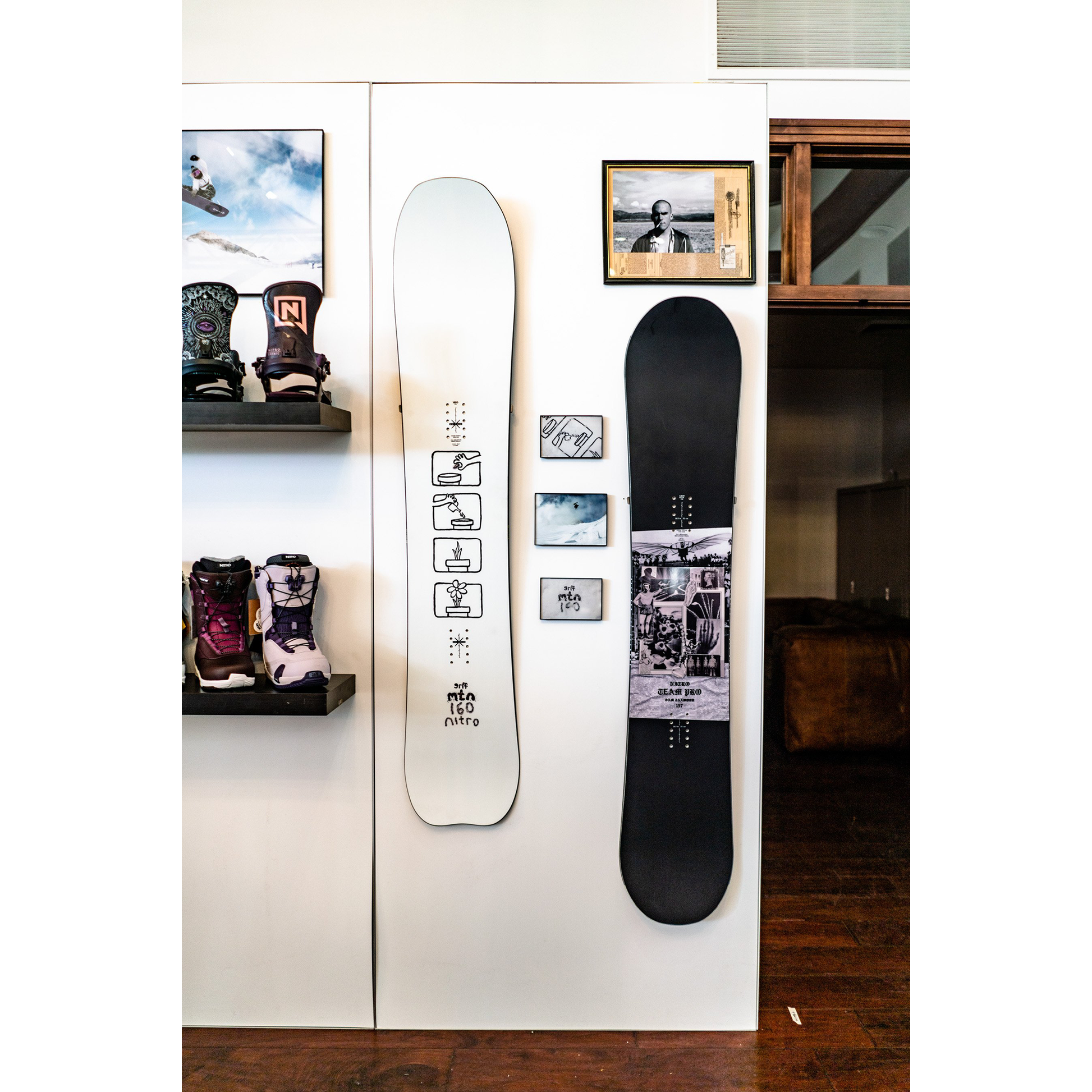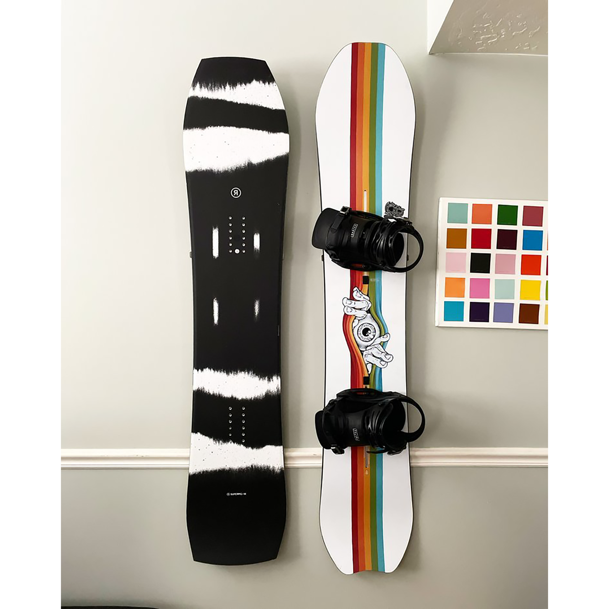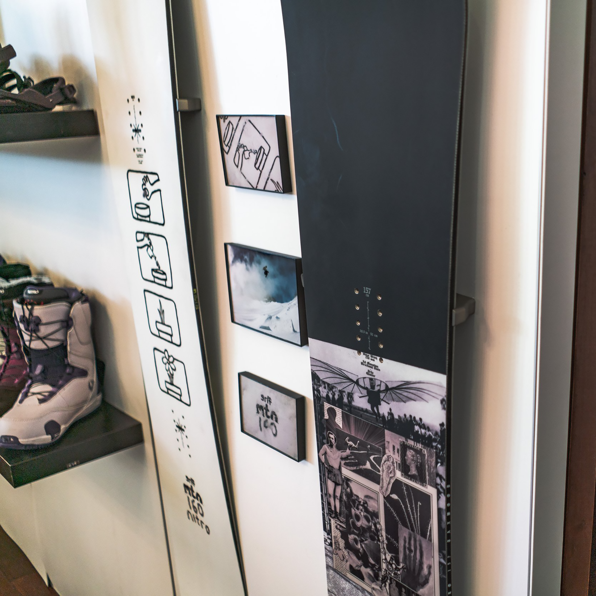 - Mount one snowboard on the wall