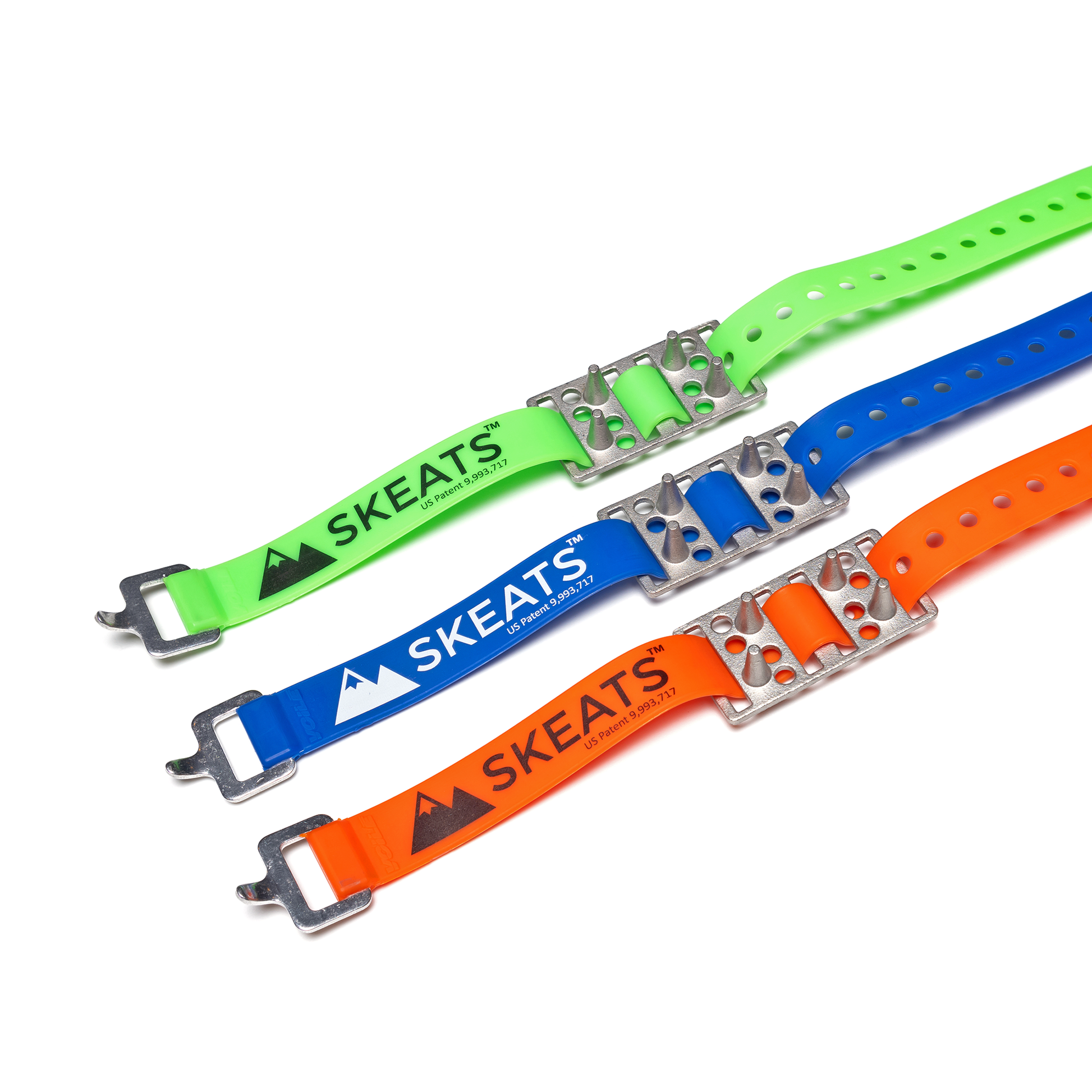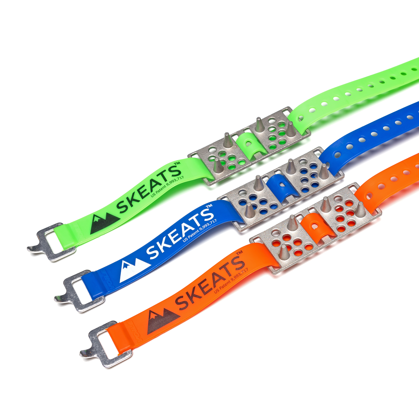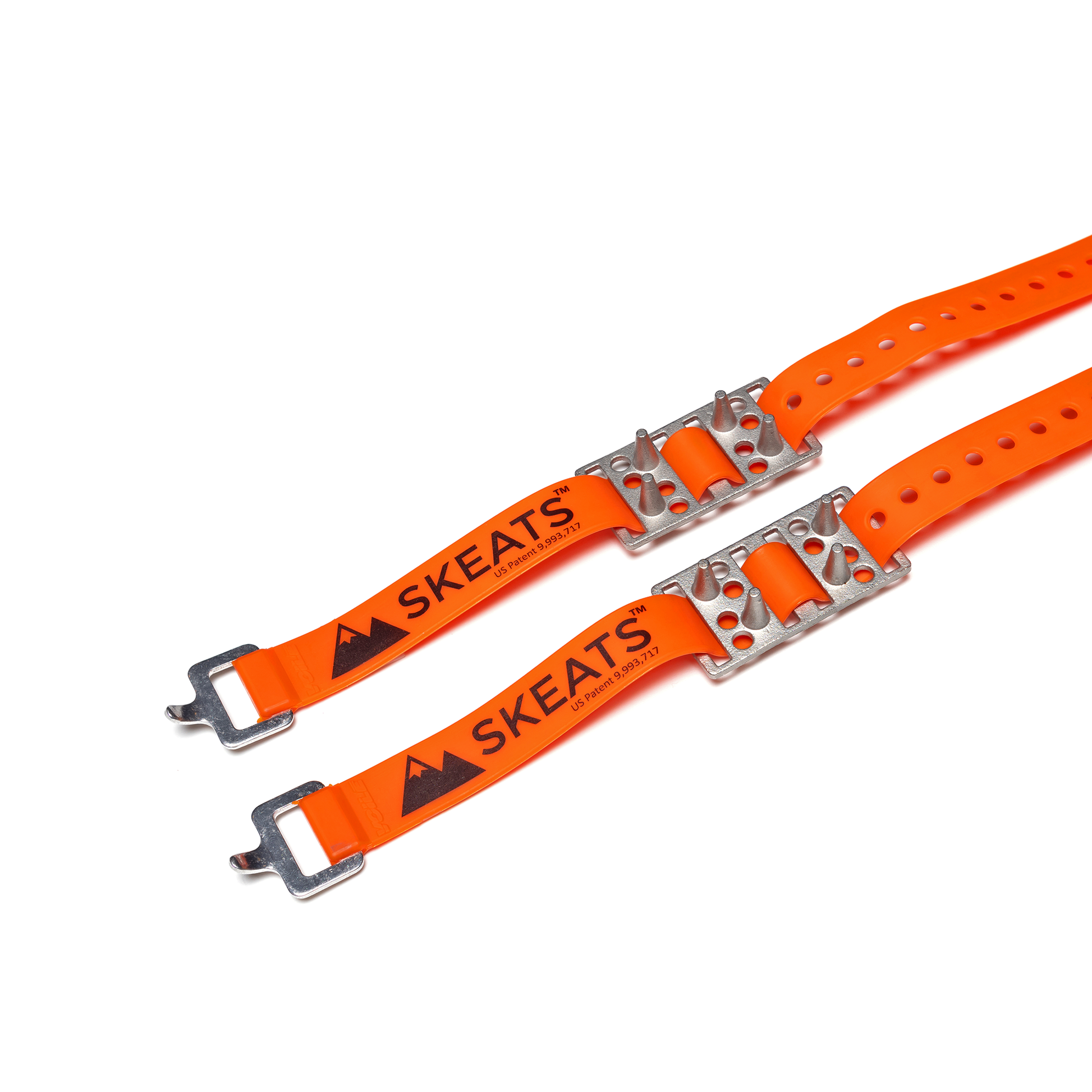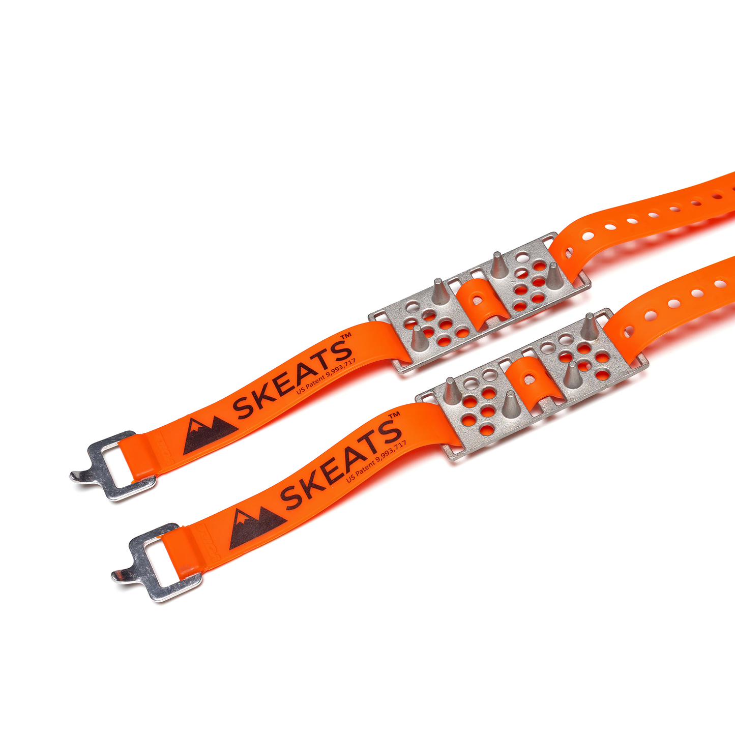 SKEATS™ Original スキンクリートは、交互に配列されたスパイクが氷の急斜面でグリップ力を高めるシリーズ最軽量のスキークランポンです。斜面に対して板をフラットな状態にして踏込み、トラクションを高めます。