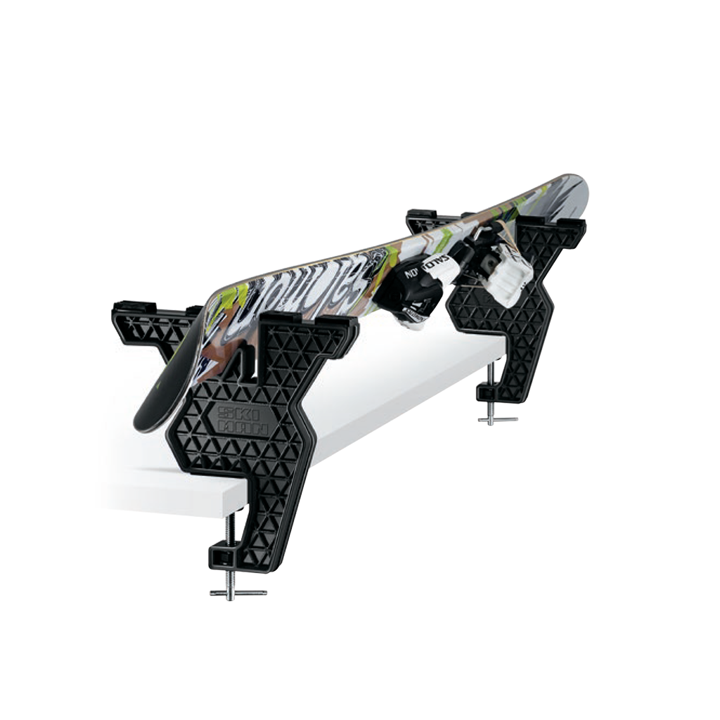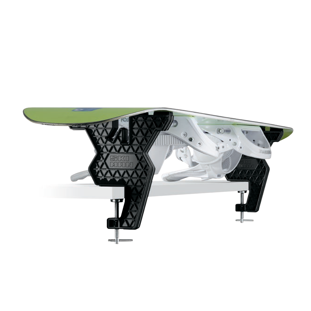 サイドとベースのチューニング時には、スノーボードとワイドスキーをグリップする特殊ラバーが取付けられてあり、置くだけで板が固定されます。